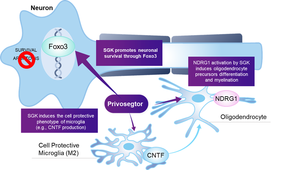 Privosegtor was selected by high-throughput screening (HTS) for neuroprotective properties, confirmed in vivo in glaucoma, multiple sclerosis, and acute optic neuritis models.